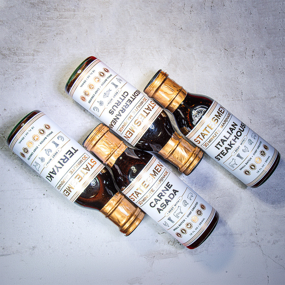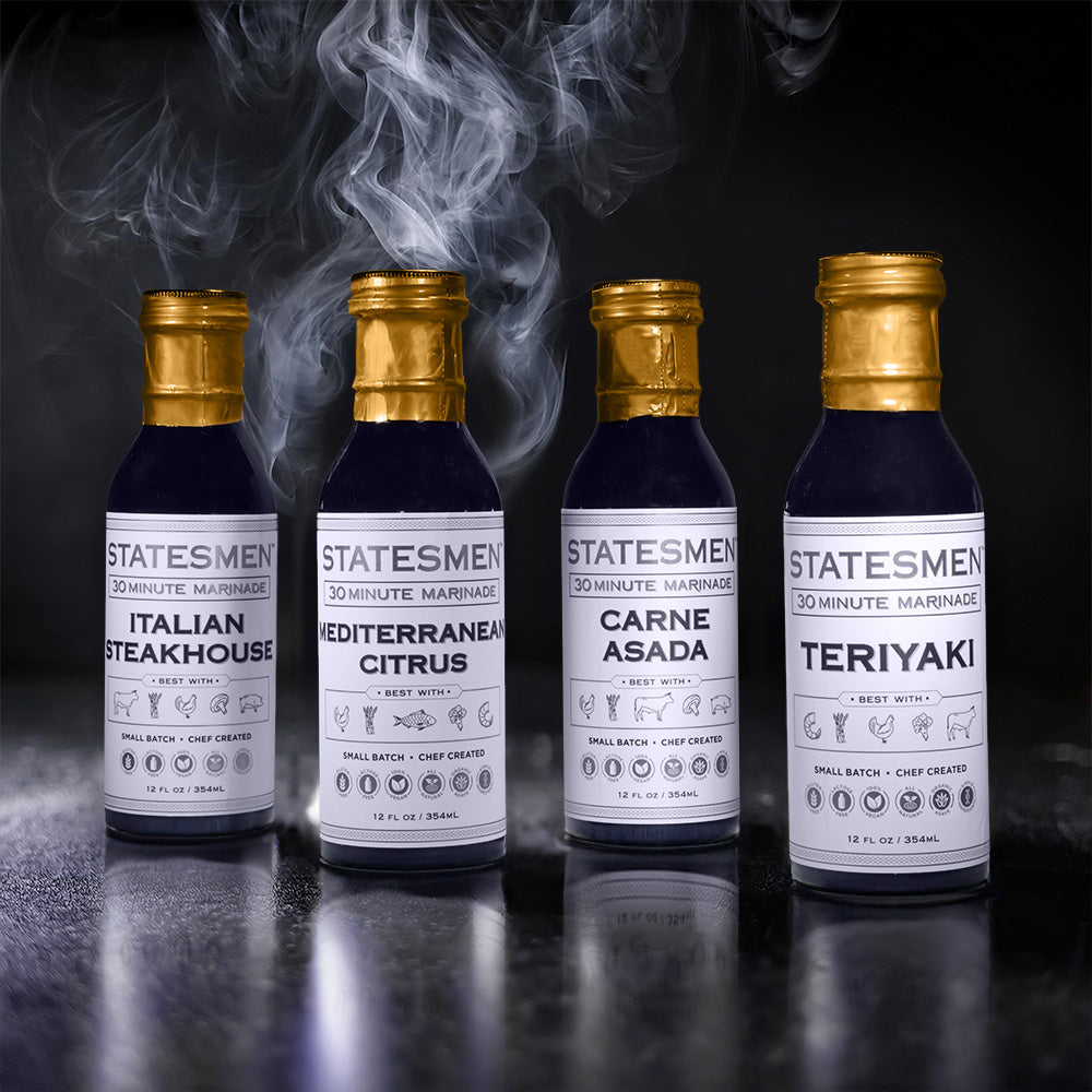 DON'T KNOW WHICH ONE TO CHOOSE? YOU DON'T HAVE TO WITH THE SAMPLER. YOU RECEIVE 1 OF EACH FLAVOR. CARNE ASADA, ITALIAN STEAKHOUSE, TERIYAKI, & MEDITERRANEAN CITRUS. All are gluten-free, vegan, all-natural products with simple ingredients, all-natural preservative(citric acid).